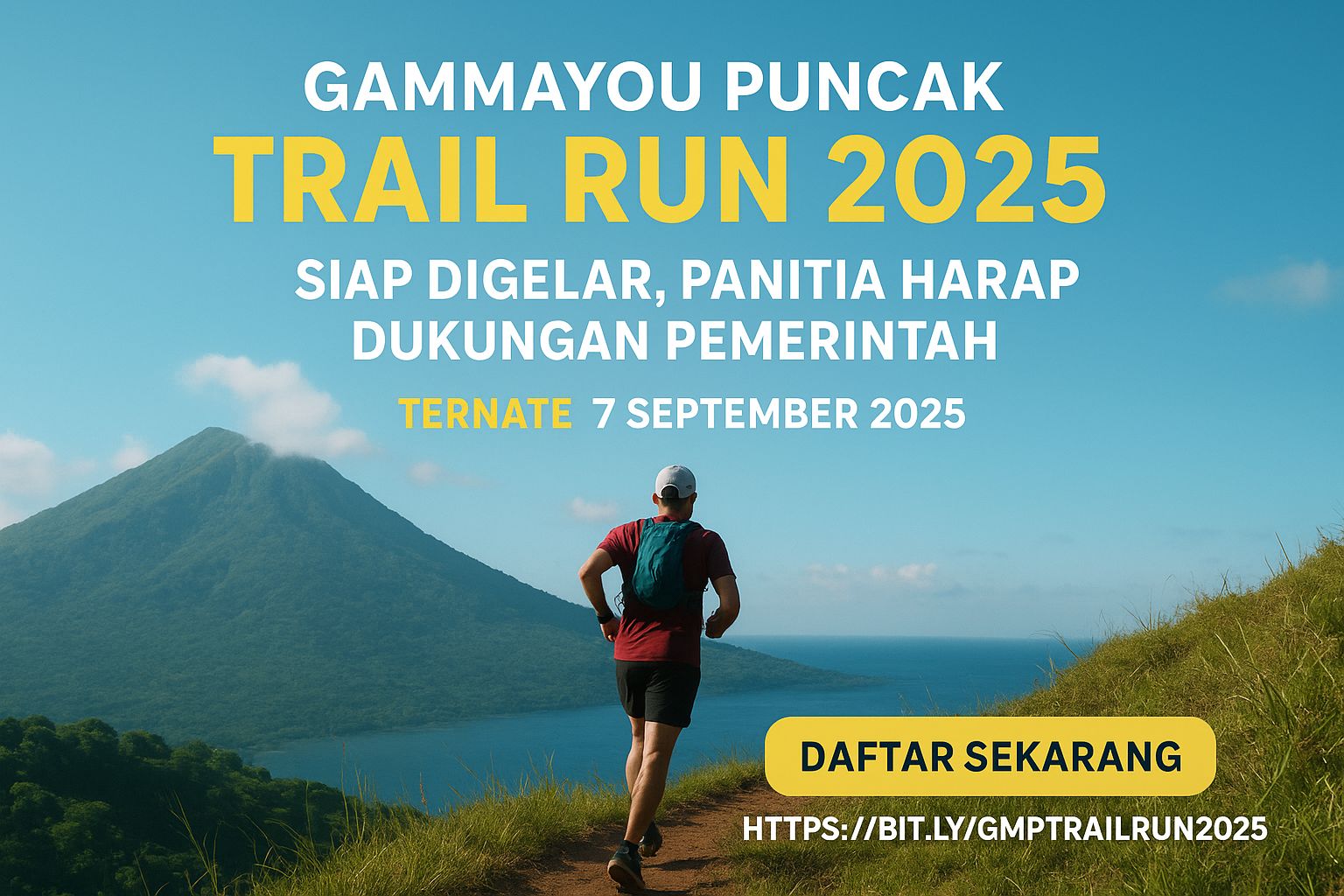 Event lari paling ditunggu di Kota Ternate, Gammayou Puncak Trail Run 2025, akan digelar pada 7 September 2025. Mengusung konsep trail run sejauh 7 kilometer, ajang ini menjanjikan tantangan berbeda dengan rute dariGammayou Puncak menuju Taman Love, disertai panorama alam Ternate yang memukau.