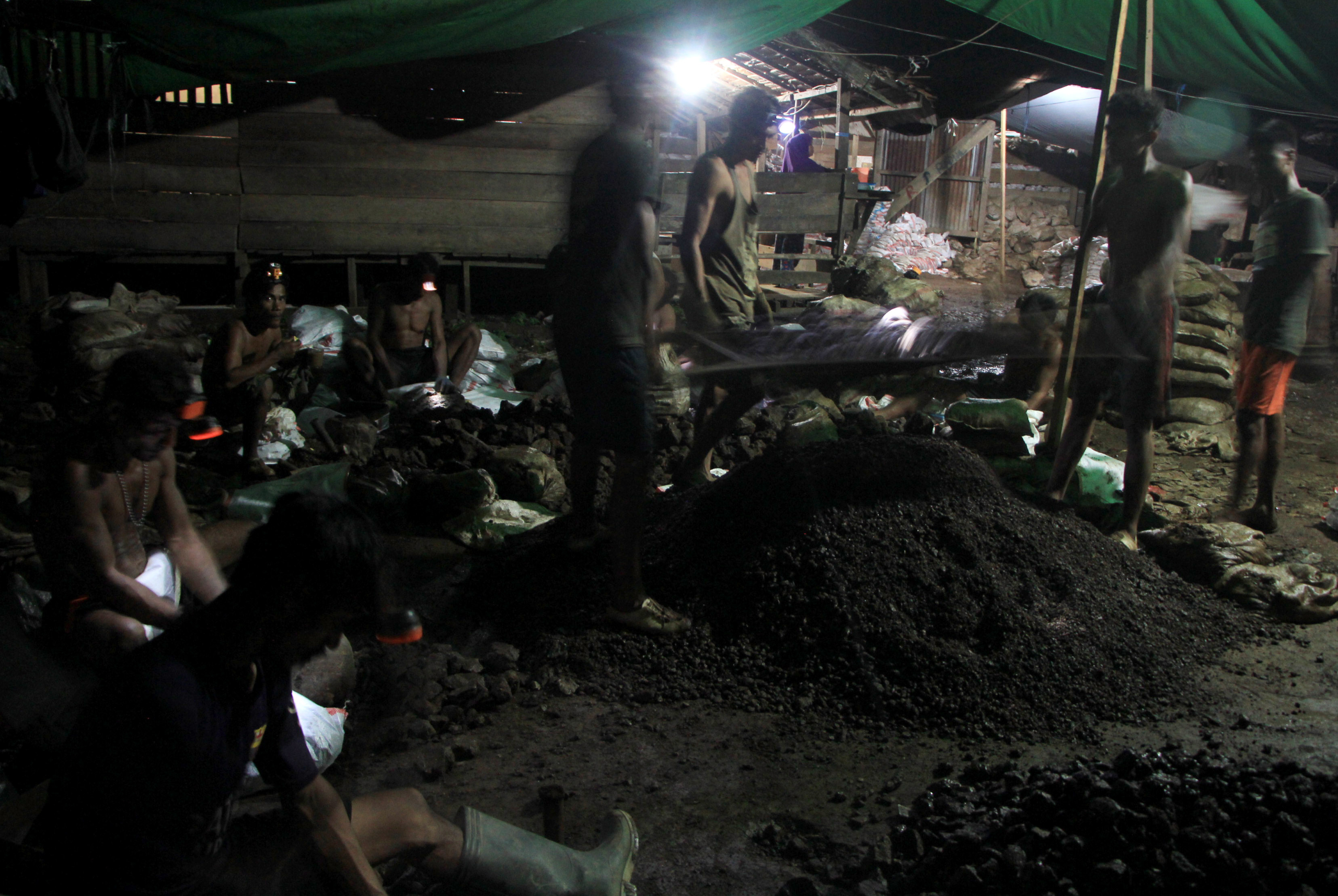 Kokehe  – Lahan di area pertambangan nampak amat  gersang. Di atas tanah yang kering inilah, berdiri rumah-rumah kayu milik para bos tambang. Di bawah atap-atap seng rumah kayu ini, segala aktivitas pengolahan emas berlangsung, mulai dari proses menghaluskan bongkahan batu rep dengan palu.